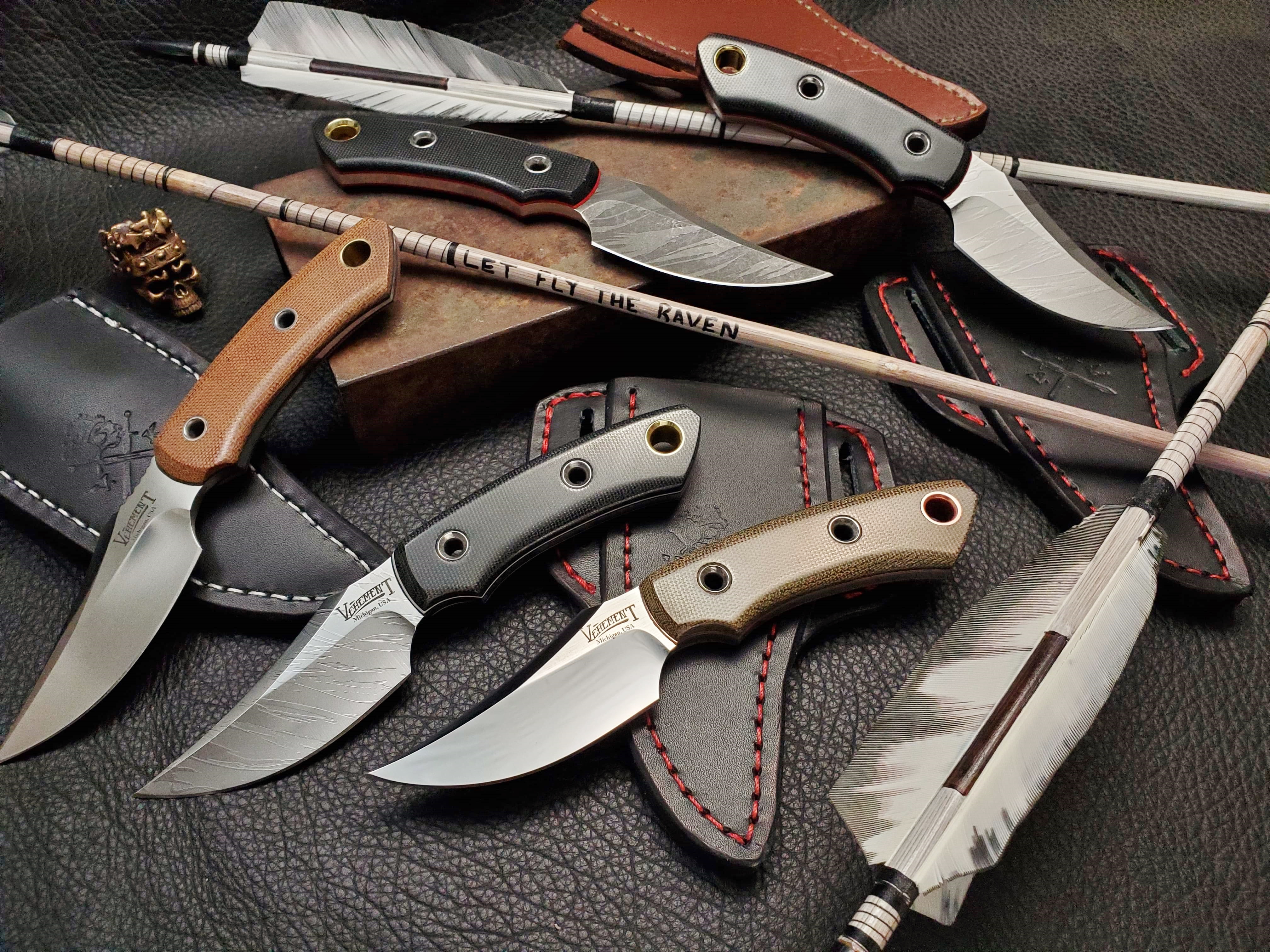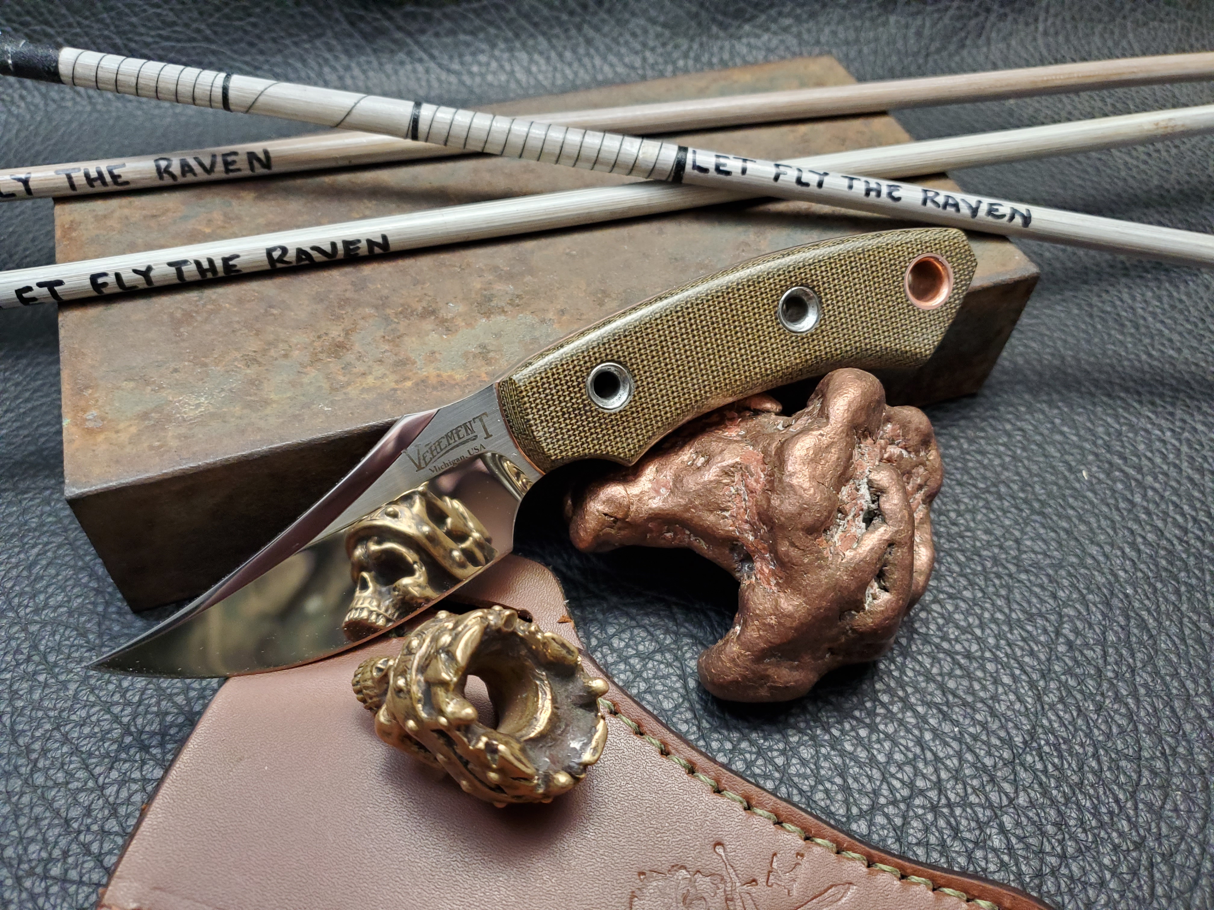 At Vehement Knives we know that form follows function, but when performance is high, so should be style. The Vehement RAVN exemplifies this philosophy. Built for every day carry, the VK RAVN sports a sexy, curvaceous blade with an eye catching clip point. The deep hollow grind ensures generations of resharpening before ever altering the knife’s keen cutting geometry. Suitable for dressing game from squirrels to moose, as well as opening parcels and light food prep, this knife is capable in both the city and the country.